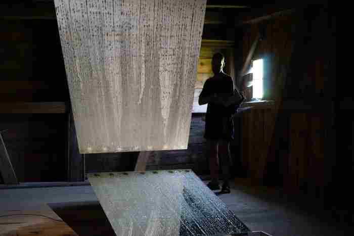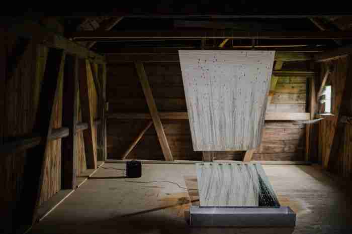 The musician and visual artist Asi Föcker (*1974) now lives in St. Gallen after many years in Berlin. Artistically, she works in the fields of installation, object performance, music and photography. In her work, she experiments with light, air, movement, space and sound, which she combines in her installations to create poetic, site-specific interventions. Her starting point is everyday objects and materials, which she examines for their properties. Föcker is interested in the fragile, temporary state that can arise in the movement of objects: the appearance of something hidden.
