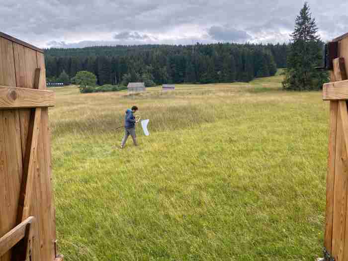 Spaniard Juan José López (*1992) is researching how insects communicate through mechanical waves at the National Institute of Biology in Ljubljana. Among other things, biotremology investigates the extent to which the communication of arthropods allows conclusions to be drawn about the ecological context. The method can complement the study of different habitats and make a hidden world audible and tangible. Zurich-based composer, artist and natural sound researcher Ludwig Berger (1986) creates electro-acoustic compositions. His works make landscapes audible, be they cities, Japanese gardens, glaciers or - as in KLANG MOOR SCHOPFE 2019 - a bee colony. Together, López and Berger have created the installation "Insect Rhythmic Union", which opens up unexpected access to the world of insects living in the moor meadows.