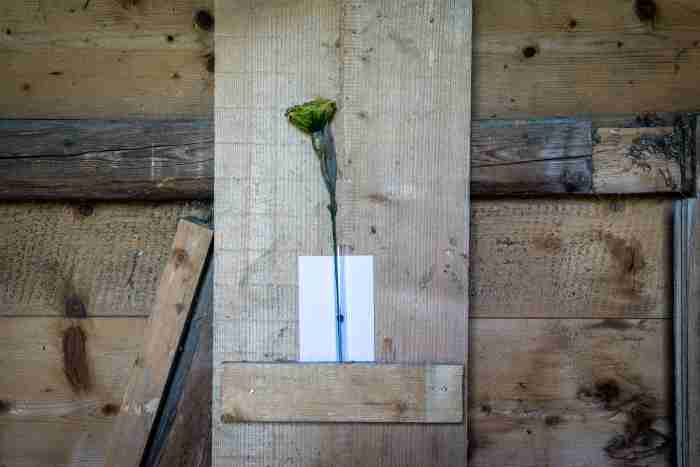 Every day at 12 noon, a marksman shoots at paper flowers that are part of Olaf Nicolai's installation.